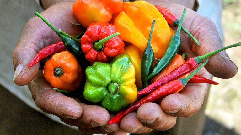 Muestra de las diferentes variedades de ajíes cultivadas en la comunidad de Saballos, Cotui.