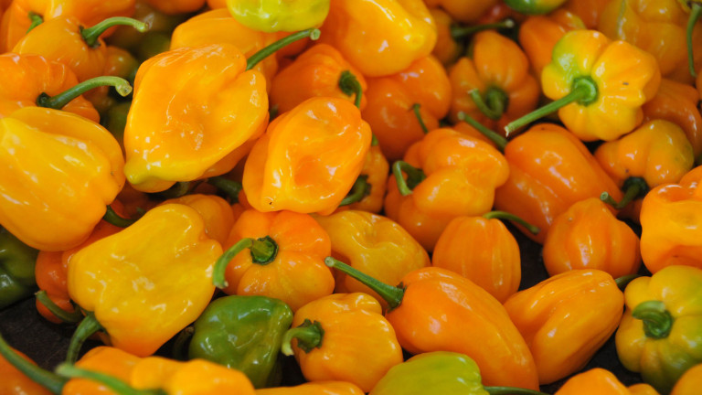 Producción de ajíes cultivados por parceleros de la comunidad de Saballo, en Cotuí, beneficiados con un préstamo financiero con el que consiguieron una bomba para riego de arroz y ahora en las parcelas se cultiva de todo, ají, plátano y arroz. Resuelto el problema.