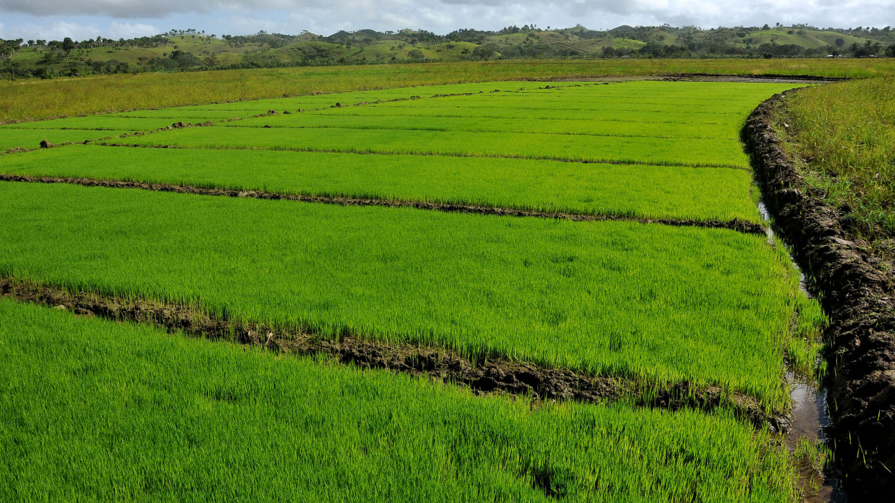 Vista de las plantaciones de arroz, en la comunidad de Saballos, Cotui.