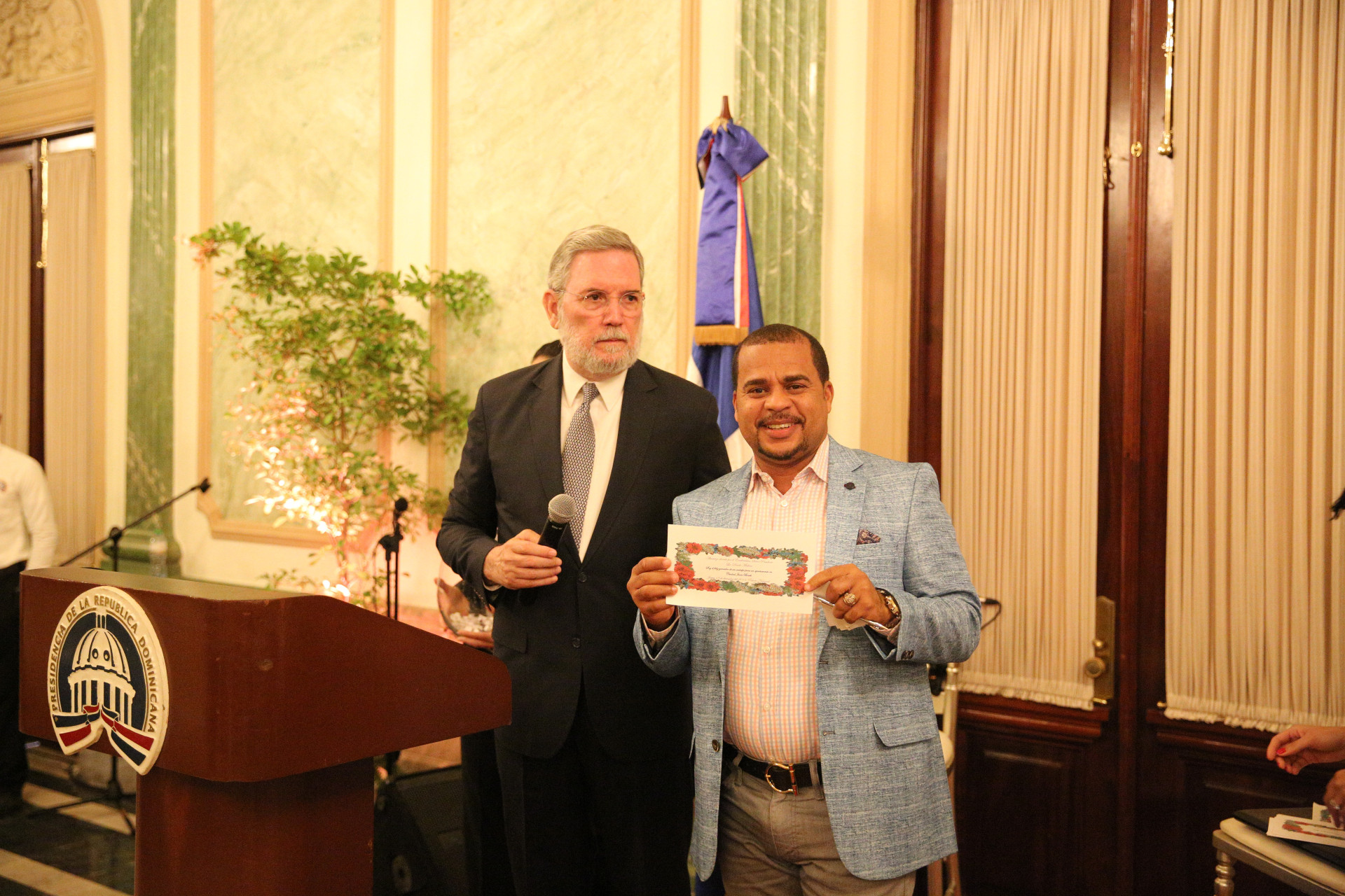 Imágenes del almuerzo navideño ofrecido a periodistas, camarógrafos y fotógrafos de los distintos medios de comunicación acreditados en la sede del Gobierno dominicano, realizado hoy en el Salón Verde del Palacio Nacional.