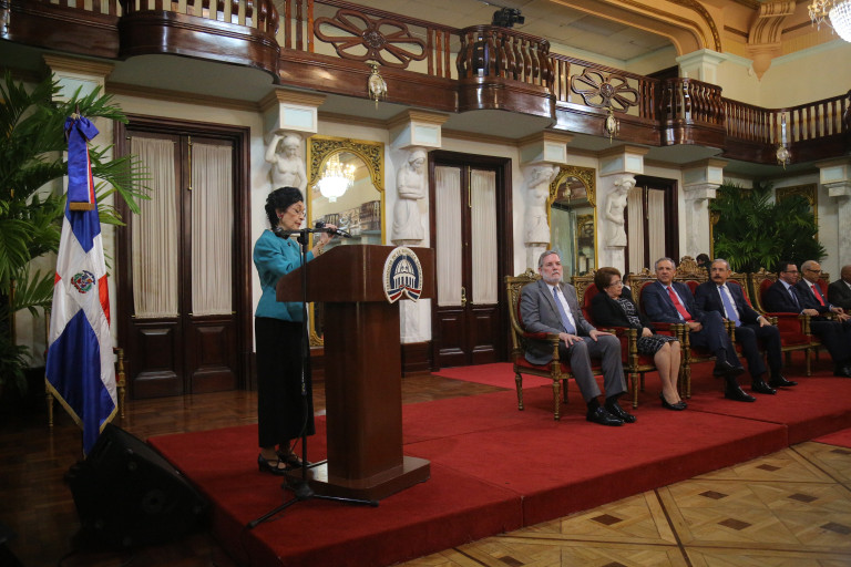 La galardonada recibió de manos del presidente Danilo Medina, un certificado de reconocimiento y una compensación de un millón de pesos.