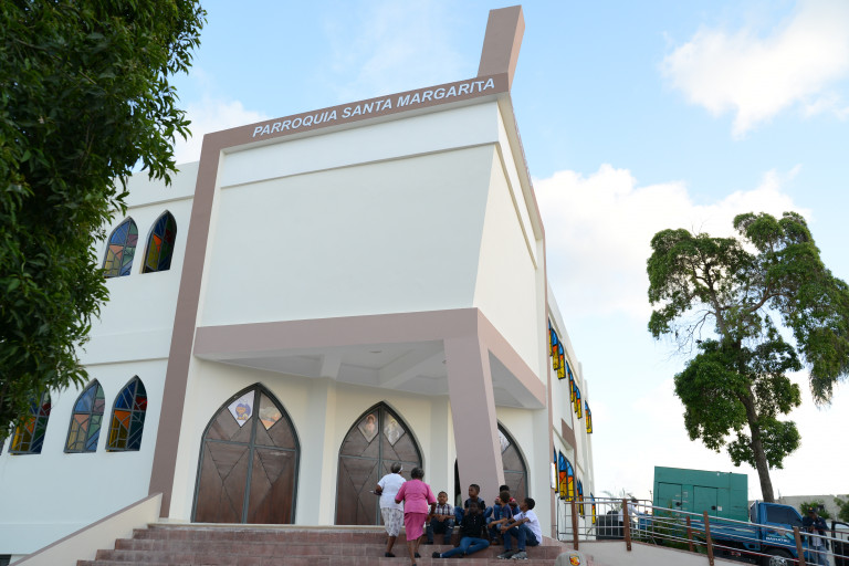 Templo Parroquial Santa Margarita María de Alacoque en el sector Los Guaricanos, entregado hoy con la presencia del presidente Danilo Medina y Mons. Francisco Ozoria Acosta, arzobispo metropolitano de Santo Domingo. Foto: Presidencia República Dominicana Enlace noticia: presidencia.gob.do/noticias/compromiso-cumplido-danilo-me...