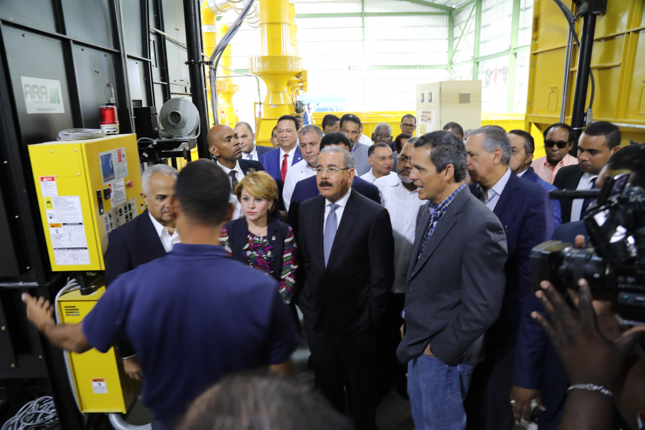 Recorrido del presidente Danilo Medina junto a funcionarios del Gobierno y autoridades de la provincia, por las nuevas instalaciones de la planta.
