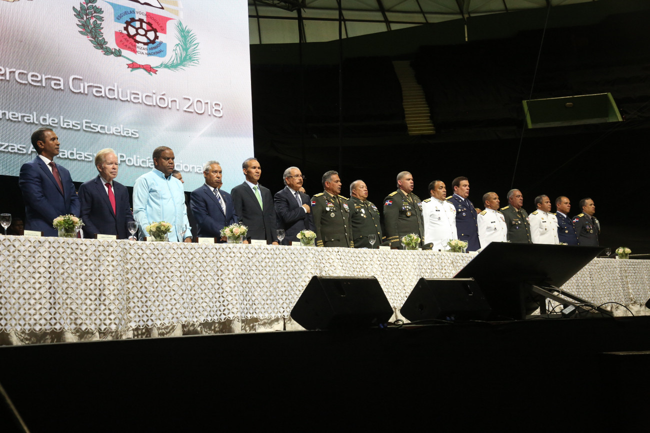 Acto de graduación de las Escuelas Vocacionales de las Fuerzas Armadas y la Policía Nacional, encabezado por el presidente Danilo Medina y el ministro de Defensa, teniente general Rubén Darío Paulino Sem, en el Palacio de los Deportes Virgilio Travieso Soto, del Centro Olímpico Juan Pablo Duarte. Foto: Ángel Álvarez/Presidencia República Dominicana Enlace noticia: presidencia.gob.do/noticias/presidente-danilo-medina-enca... Video YouTube: www.youtube.com/watch?v=9pAUGWLzOi4