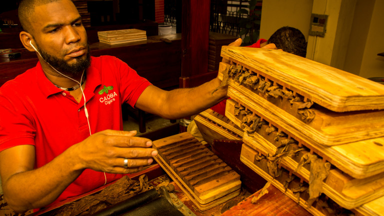 Tabacos suaves, medios y fuertes, así como saborizados, elabora Tabacalera Caoba en la Ciudad Colonial de Santo Domingo.