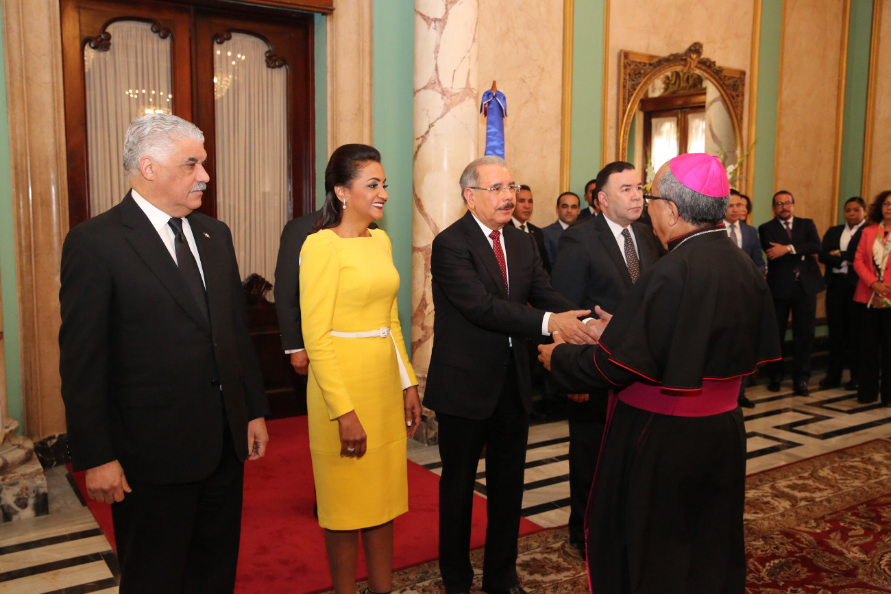 Presidente Danilo Medina y primera dama, Cándida Montilla, reciben saludos de Año Nuevo en Palacio Nacional