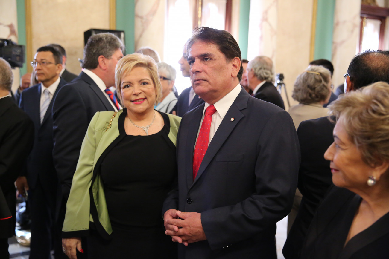 De manera entusiasta y con evidente alegría, el presidente Danilo Medina y la primera dama de la República, Cándida Montilla de Medina, recibieron los saludos de Año Nuevo, en una ceremonia que tuvo lugar en el Salón de Embajadores del Palacio Nacional.