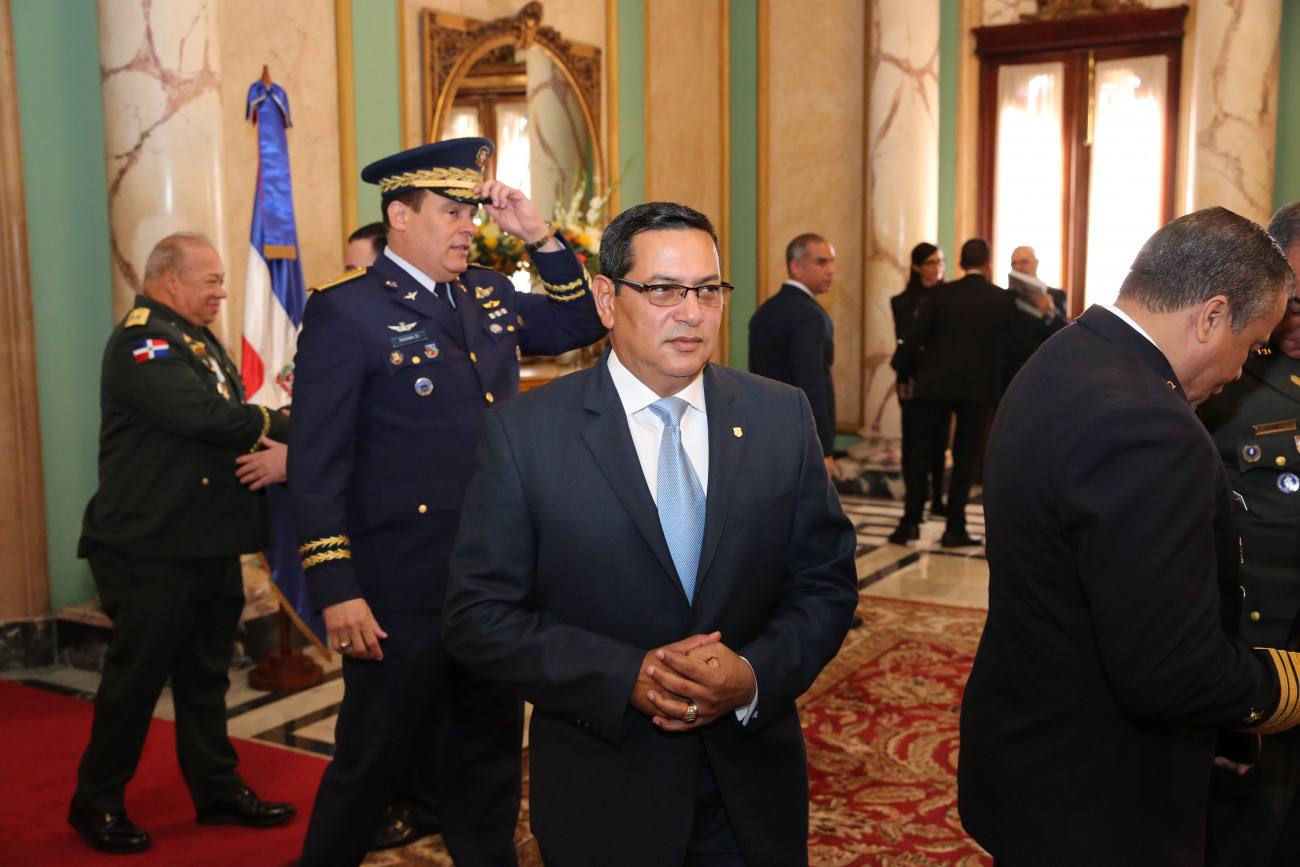 De manera entusiasta y con evidente alegría, el presidente Danilo Medina y la primera dama de la República, Cándida Montilla de Medina, recibieron los saludos de Año Nuevo, en una ceremonia que tuvo lugar en el Salón de Embajadores del Palacio Nacional.