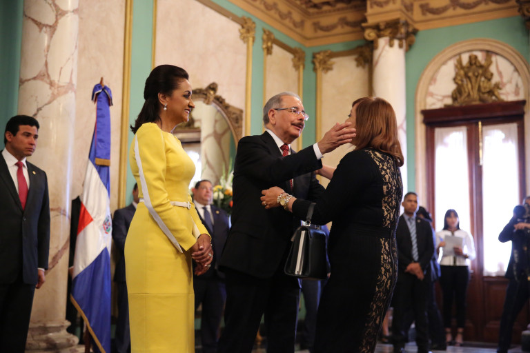De manera entusiasta y con evidente alegría, el presidente Danilo Medina y la primera dama de la República, Cándida Montilla de Medina, recibieron los saludos de Año Nuevo, en una ceremonia que tuvo lugar en el Salón de Embajadores del Palacio Nacional.