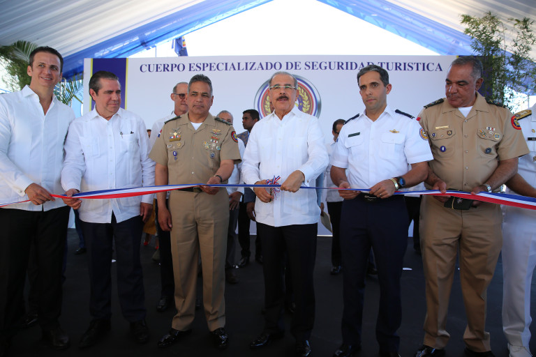 El presidente Danilo Medina entregó el nuevo edificio del Cuerpo Especializado de Seguridad Turística (CESTUR), en esta provincia.