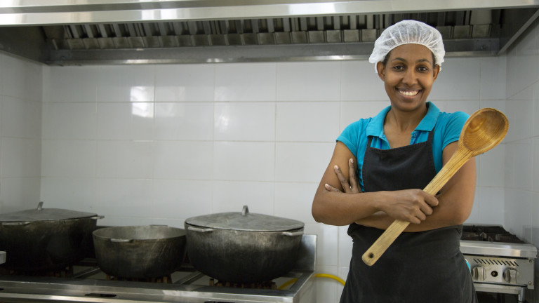 Las tías cocineras de la estancia infantil en Ciudad Juan Bosch tienen dos condimentos mágicos para tener a los chiquitines barriguitas llenas y corazoncitos contentos. ¿Cuáles son esos condimentos? Alimentarlos con amor y sabor.