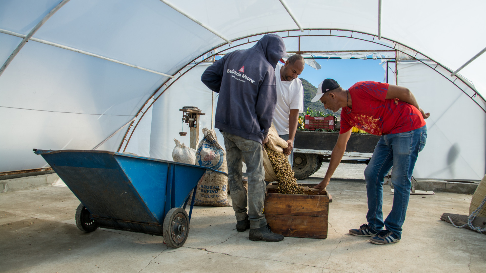 Café La Tambora, denominación de Origen Valdesia, lo producen 175 caficultores del Movimiento Cafetalero de Acción Comunitaria (MOVICAC).