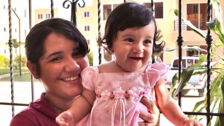 Familia residente del nuevo proyecto habitacional inaugurado hoy por Constructora Bisonó.