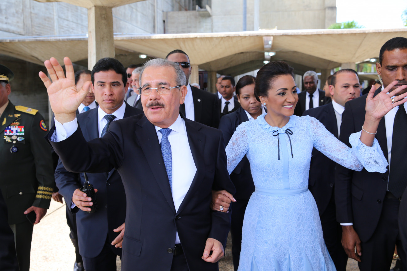 El presidente Danilo Medina y la primera dama Cándida Montilla de Medina saludan a los asistentes a la misa de acción de gracias con motivo del Día de Nuestra Señora de la Altagracia.