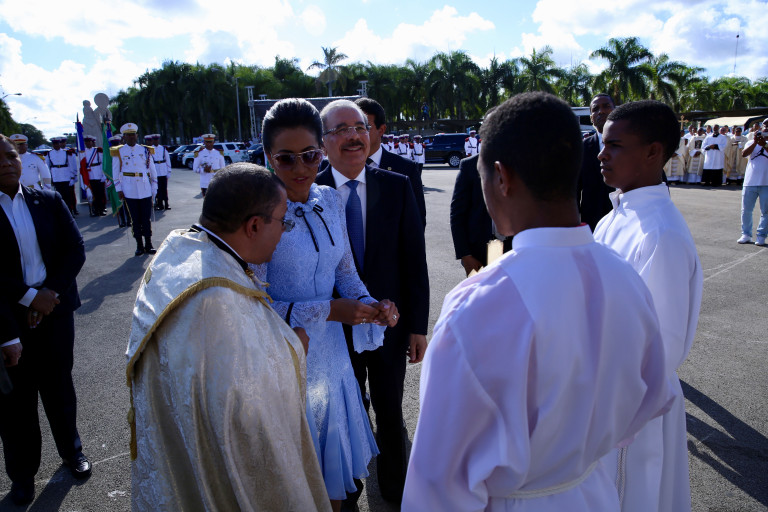 El presidente Danilo Medina y la primera dama Cándida Montilla de Medina llegaron a las 9:58 de la mañana a la Basílica Catedral Nuestra Señora de la Altagracia.
