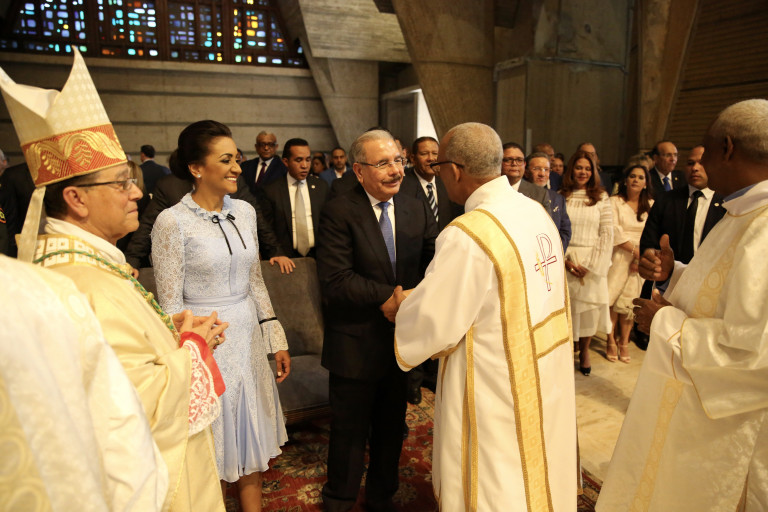 El presidente Danilo Medina y la primera dama Cándida Montilla de Medina llegaron a las 9:58 de la mañana a la Basílica Catedral Nuestra Señora de la Altagracia.