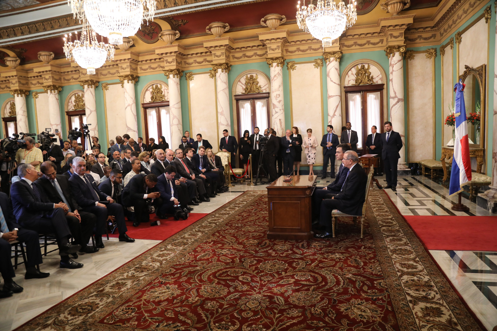 El presidente de la República Danilo Medina y su homólogo de España, Pedro Sánchez, durante la firma de dos acuerdos de cooperación internacional, realizados hoy en el marco de su viaje oficial a República Dominicana. Foto: Presidencia República Dominicana Enlace noticia: presidencia.gob.do/noticias/presidente-danilo-medina-se-r... Enlace noticia: presidencia.gob.do/noticias/presidentes-danilo-medina-y-p... Enlace video: livestream.com/PresidenciaRD/VisitaPedroSanchez