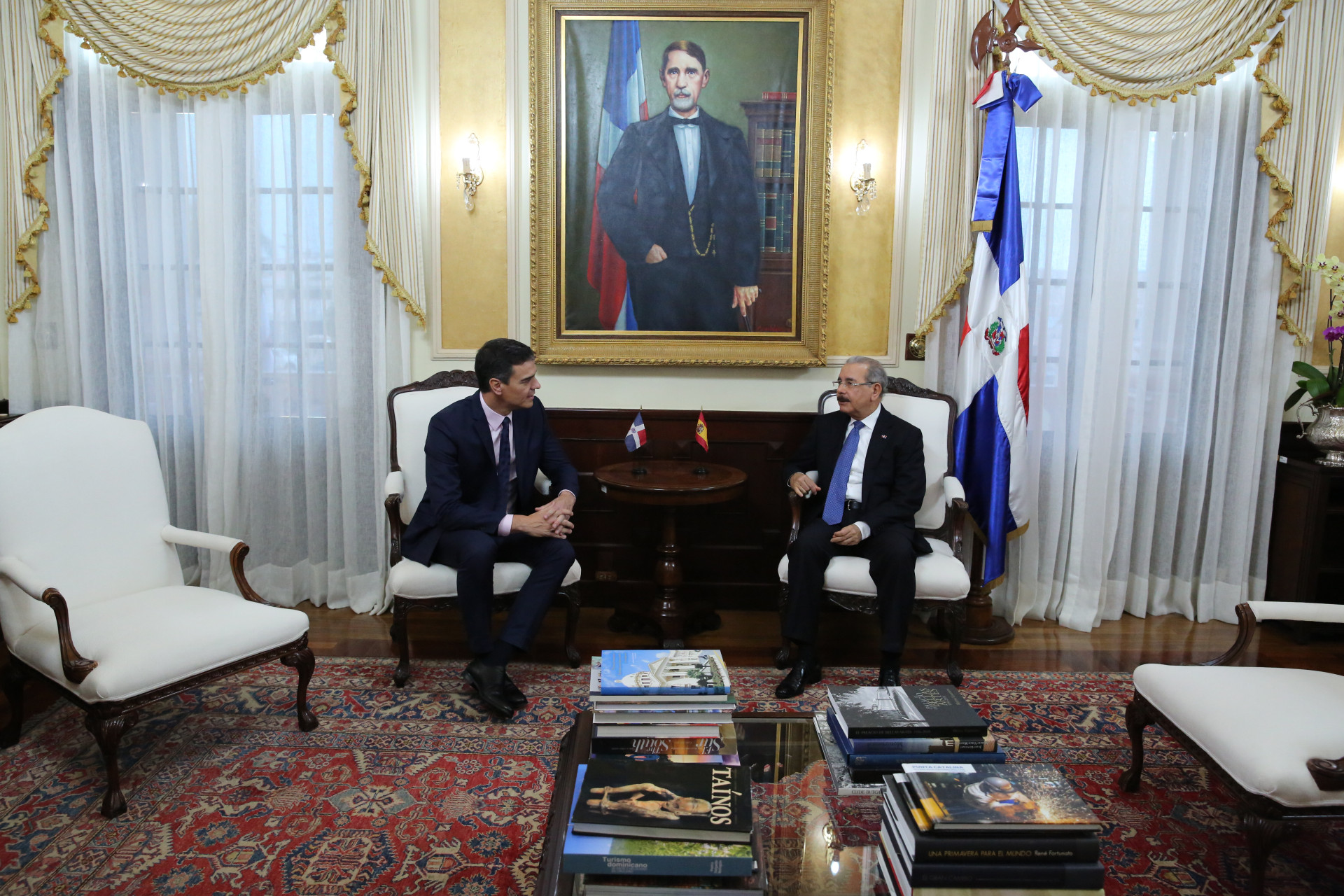 El presidente Danilo Medina se reunió con su homólogo español, Pedro Sánchez, en el Despacho Presidencial del Palacio Nacional, en el marco de una visita oficial a República Dominicana.