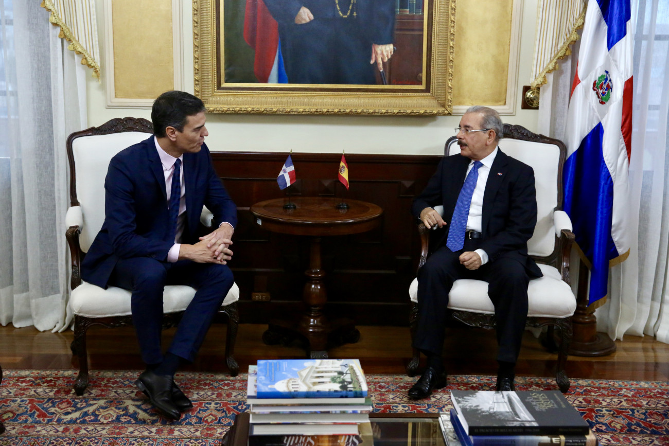 El presidente Danilo Medina se reunió con su homólogo español, Pedro Sánchez, en el Despacho Presidencial del Palacio Nacional, en el marco de una visita oficial a República Dominicana.