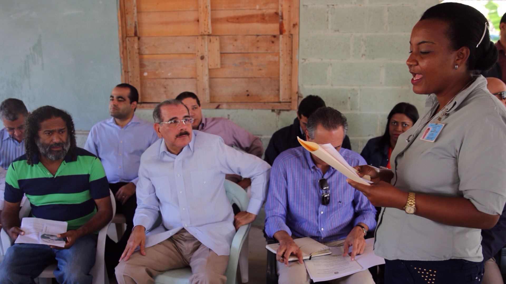 Participación de Milagros Mejía, dirigente de la Asociación San José del Ocho, mientras expone al presidente Medina, la necesidad que tienen de recibir apoyo del Gobierno para la construcción de un invernadero