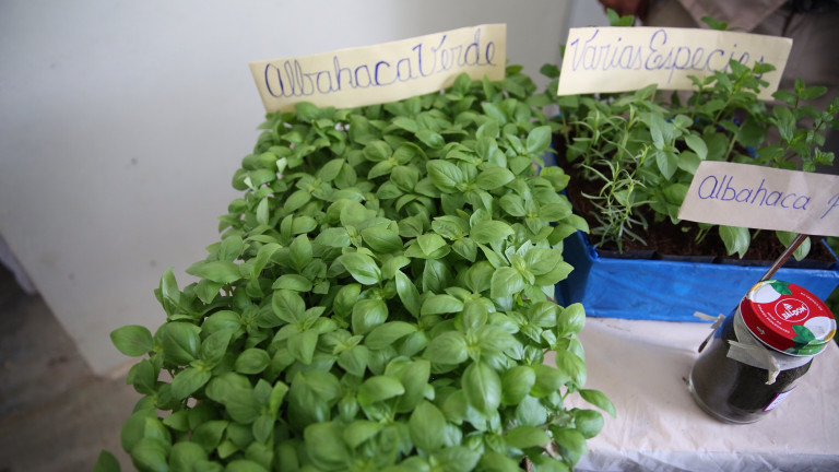 Muestra de hierbas aromáticas producidas en la zona, como parte de un proyecto de producción presentado al presidente Medina, durante su visita a esta comunidad.
