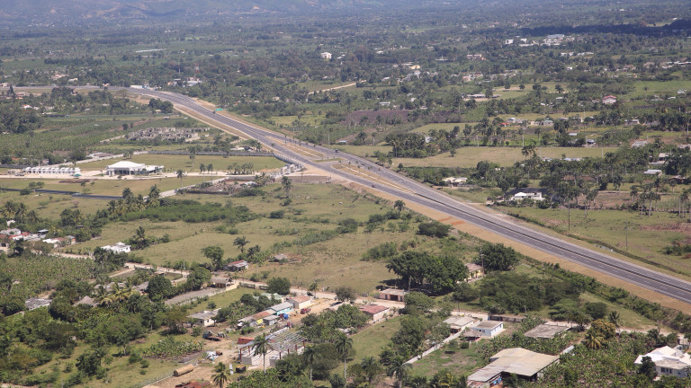 Vista aérea de los trabajos de construcción de la carretera Circunvalación Norte, en Santiago, visitada hoy por el Mandatario en viaje de supervisión.