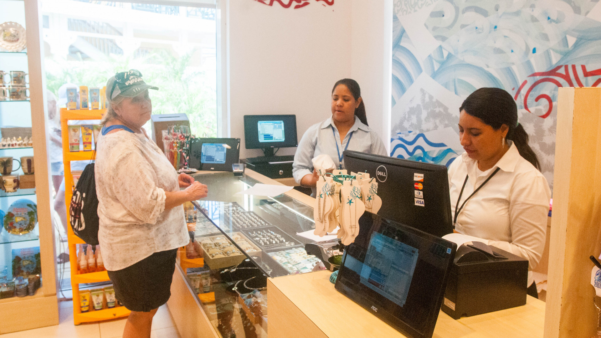 De Turquesa Gift Shop en el puerto Amber Cove, Puerto Plata, se llevan un buen recuerdo a su país.
