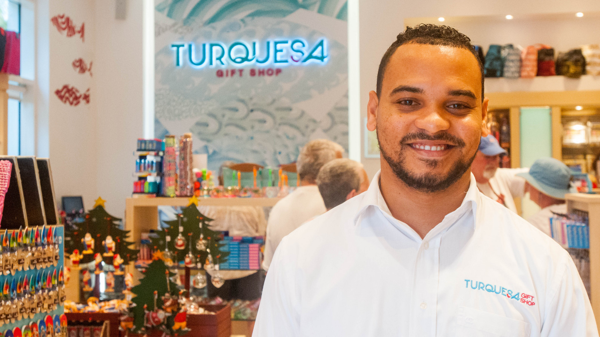 De Turquesa Gift Shop en el puerto Amber Cove, Puerto Plata, se llevan un buen recuerdo a su país.