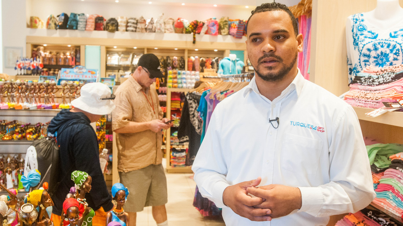 De Turquesa Gift Shop en el puerto Amber Cove, Puerto Plata, se llevan un buen recuerdo a su país.