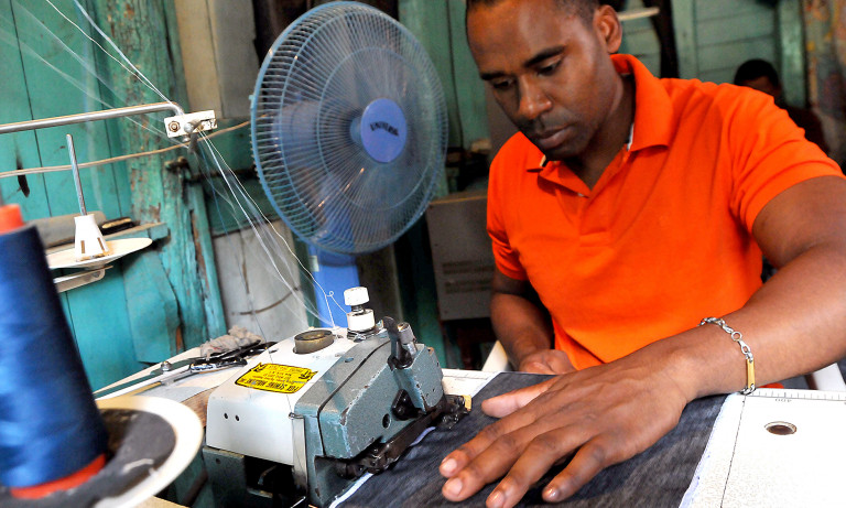 Moisés Batista y su sastrería es otro ejemplo de los beneficios que brinda Banca Solidaria. Le ha prestado cien mil pesos al 1% por ciento de interés mensual para que pueda coser, vender y ganar, también contratar, como lo ha tenido que hacer, a tres sastres más.