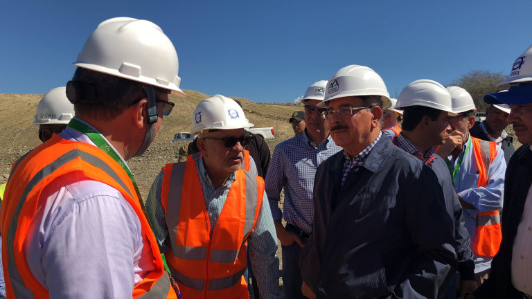 El presidente Danilo Medina durante su recorrido por la Presa Monte Grande, en Barahona, donde constató los avances en los túneles y recibió explicaciones de los detalles técnicos de la obra.