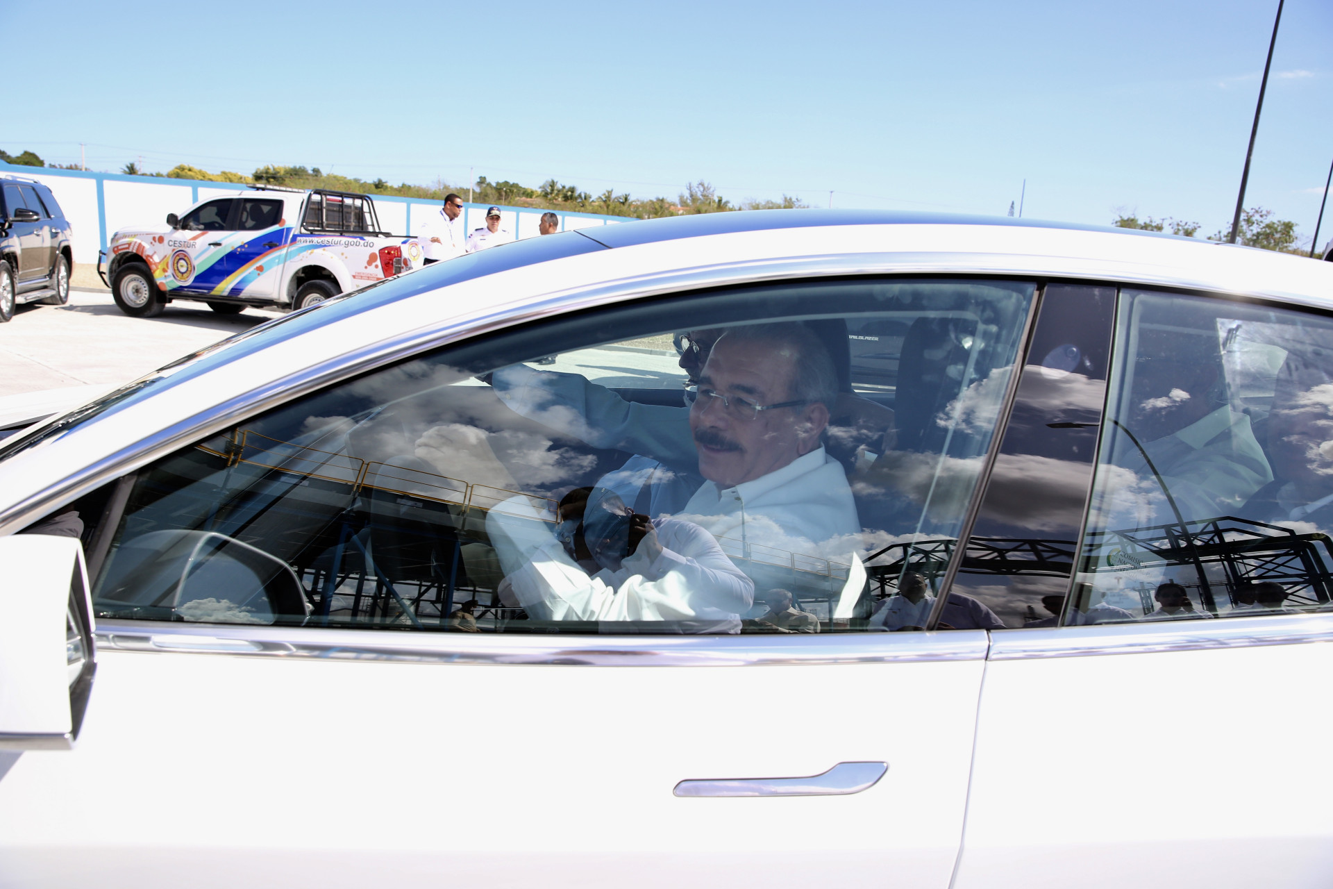 Recorrido en un vehículo eléctrico Tesla guiado por el presidente Danilo Medina acompañado de González Bunster, chairman y CEO de InterEnergy Group. Foto: Romelio Montero/Presidencia República Dominicana Enlace noticia: presidencia.gob.do/noticias/consorcio-energetico-punta-ca... Video YouTube: www.youtube.com/watch?v=9ndeowMw2-8
