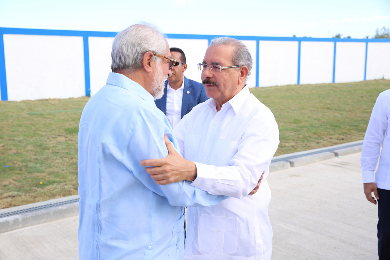 El presidente Danilo Medina al ser recibido por el empresario González Bunster, chairman y CEO de InterEnergy Group, a su llegada al evento.