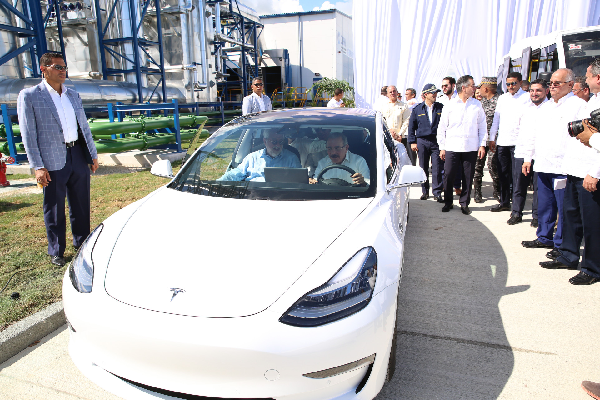 Recorrido en un vehículo eléctrico Tesla guiado por el presidente Danilo Medina acompañado de González Bunster, chairman y CEO de InterEnergy Group. Foto: Romelio Montero/Presidencia República Dominicana Enlace noticia: presidencia.gob.do/noticias/consorcio-energetico-punta-ca... Video YouTube: www.youtube.com/watch?v=9ndeowMw2-8