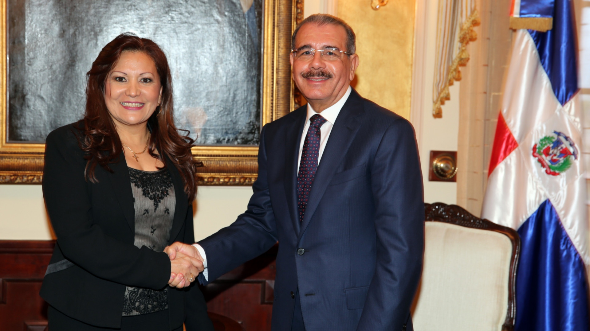 Presidente Danilo Medina y señora Paula Rodríguez, presidenta del Parlamento Centroamericano, durante visita de cortesía al mandatario en el Palacio Nacional.