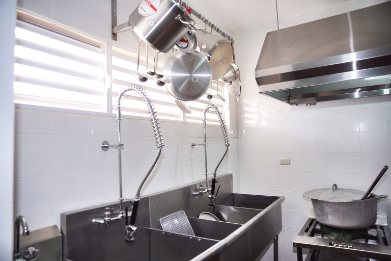 Moderna cocina industrial en acero inoxidable de una de las tres escuelas inaugurada por el presidente Danilo Medina en Bocha Chica.