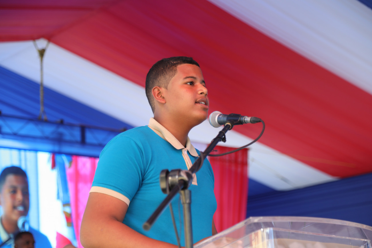 Estudiante Josiel Roa, al agradecer la entrega de los centros educativos.