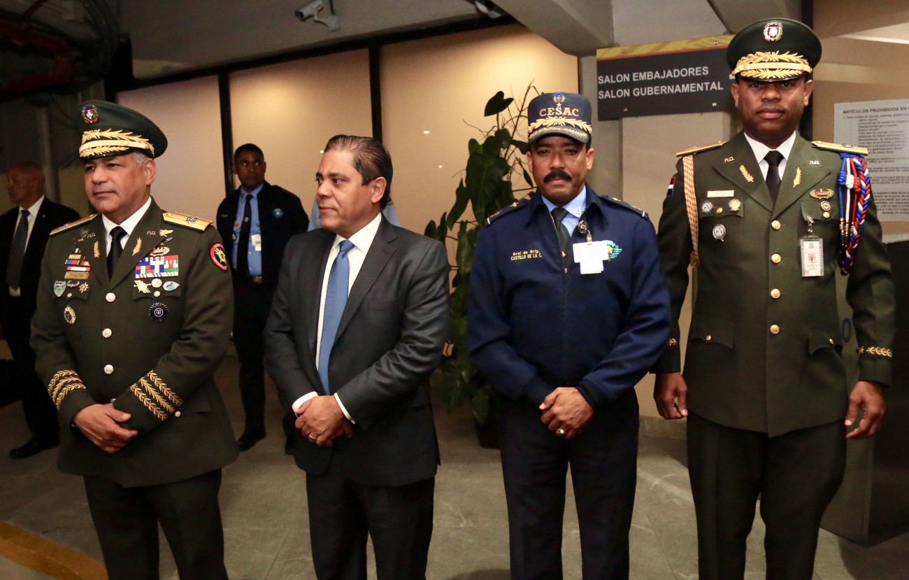 A su salida por el Aeropuerto Internacional Las Américas, el presidente Danilo Medina fue despedido por una comitiva encabezada por el ministro de Defensa, teniente general Rubén Darío Paulino Sem.