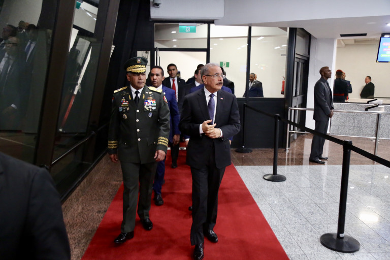 A su salida por el Aeropuerto Internacional Las Américas, el presidente Danilo Medina fue despedido por una comitiva encabezada por el ministro de Defensa, teniente general Rubén Darío Paulino Sem.