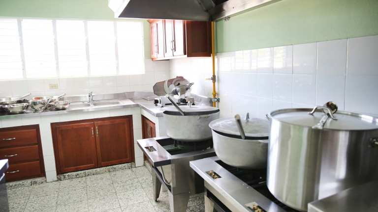 En la gráfica se puede apreciar la moderna cocina totalmente equipada con que cuenta los centros educacitivos de Tanda Extendida de la provincia de Azua,para preparación de los alimentos que recibirán los estudiantes.