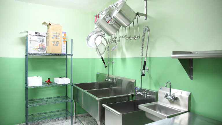 Area de la cocina, moderna y en acero inoxidable, con que cuentan las cinco escuelas entregadas por el presidente Medina a los azuanos.