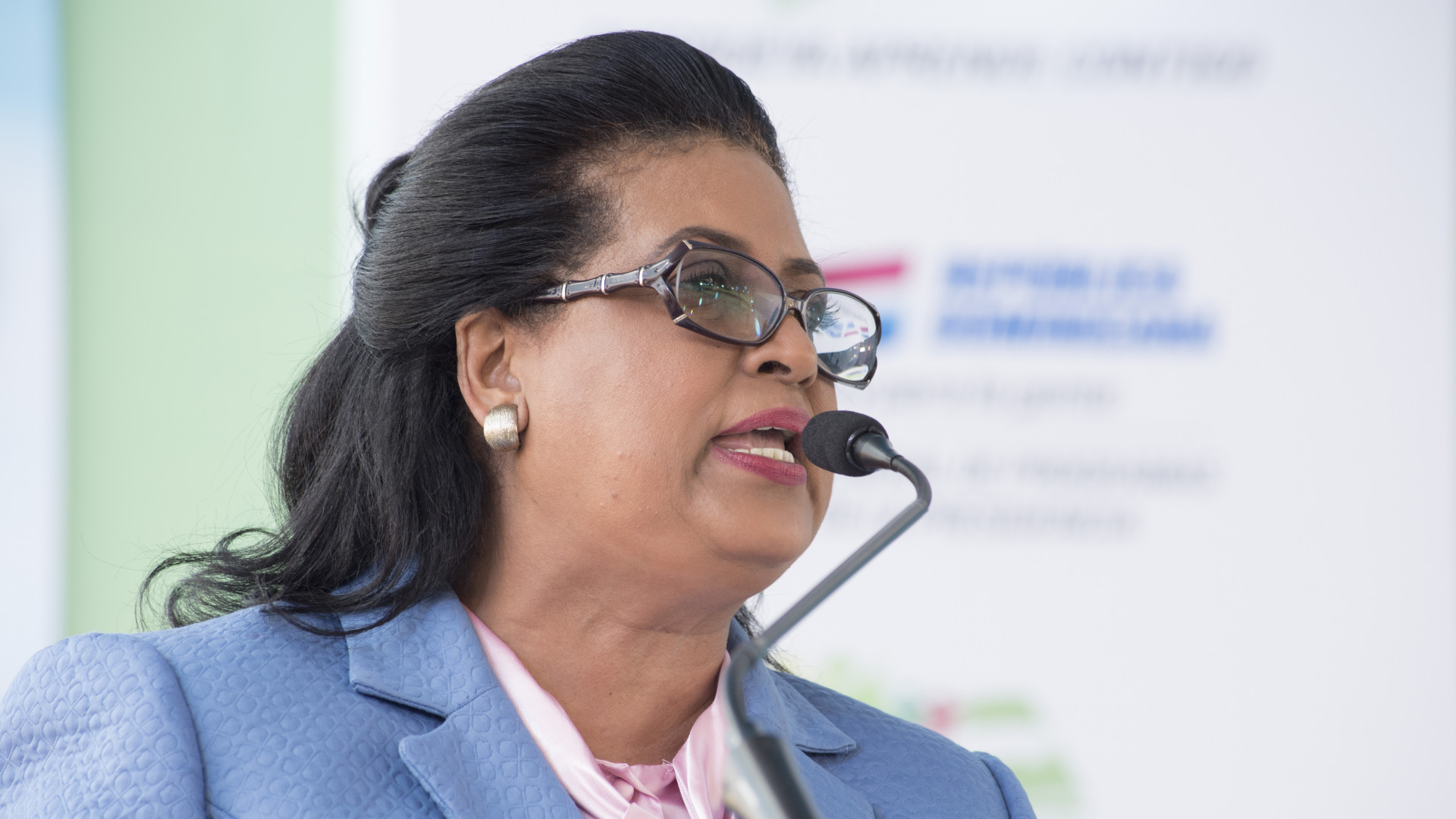 Senadora por la provincia Santo Domingo, Cristina Lizardo, durante su discurso.