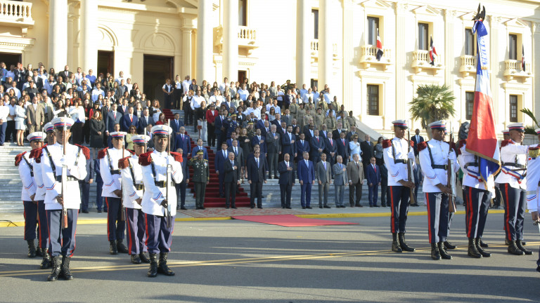 Acto de homenaje a la Bandera Nacional, encabezado por el presidente Danilo Medina, donde también se rindió un homenaje al patricio Matías Ramón Mella, al conmemorarse el 203 aniversario de su natalicio, en la explanada frontal del Palacio Nacional.