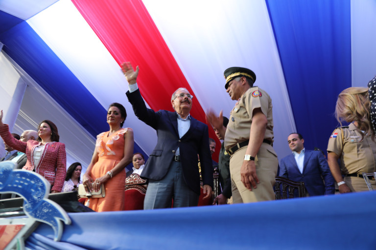El presidente Danilo Medina acompañado de su esposa, Cándida Montilla de Medina; la vicepresidenta, Margarita Cedeño de Fernández; el ministro de Defensa, teniente general Rubén Darío Paulino Sem; altos mandos militares y policiales, y funcionarios del gabinete gubernamental. Foto: Luis Ruiz Tito/Presidencia República Dominicana Enlace noticia: presidencia.gob.do/noticias/presidente-danilo-medina-enca...
