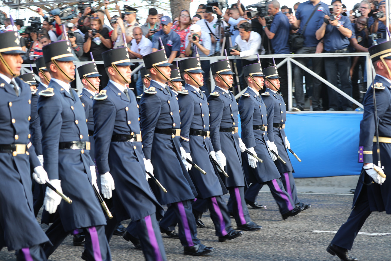Imágenes del desfile militar por el 175 aniversario de la Independencia Nacional, presidido por el presidente Danilo Medina, en la avenida George Washington de esta ciudad.