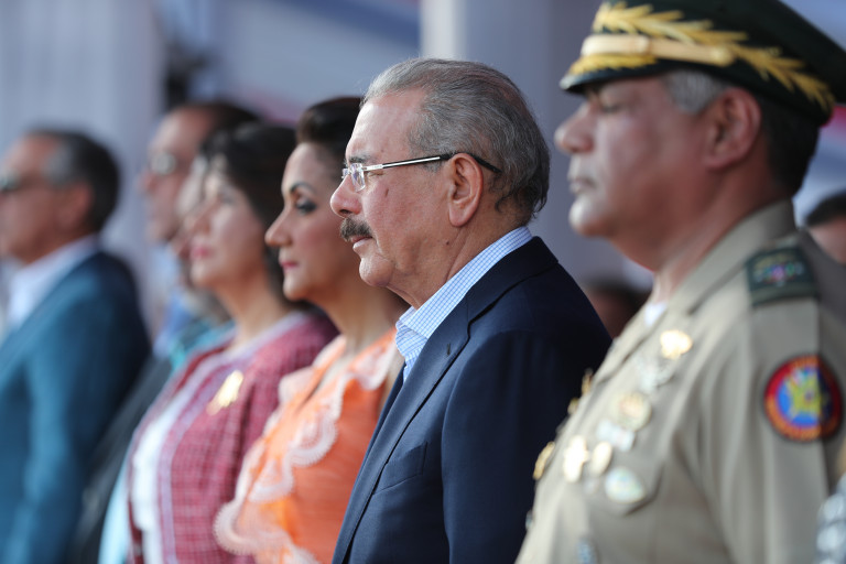 El presidente Danilo Medina acompañado de su esposa, Cándida Montilla de Medina; la vicepresidenta, Margarita Cedeño de Fernández; el ministro de Defensa, teniente general Rubén Darío Paulino Sem; altos mandos militares y policiales, y funcionarios del gabinete gubernamental. Foto: Luis Ruiz Tito/Presidencia República Dominicana Enlace noticia: presidencia.gob.do/noticias/presidente-danilo-medina-enca...