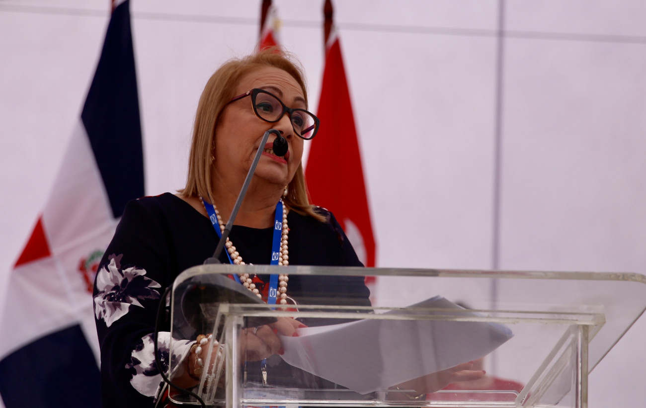 Luisa Fernández, directora del Consejo Nacional de Zonas Francas, habló en representación del gobierno dominicano y destacó el crecimiento continuo de la inversión extranjera en este sector.