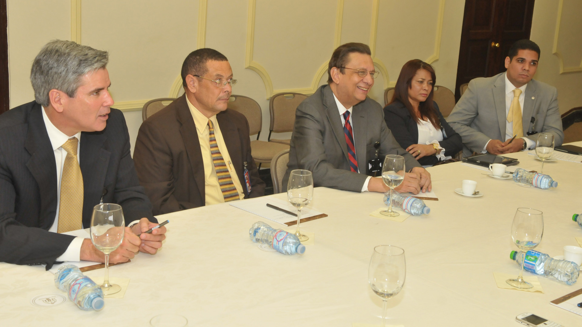Integrantes de la Comisión de Veeduría Ciudadana de la Corporación de Acueducto y Alcantarillado de Santo Domingo (CAASD), durante reunión encabezada por el ministro de la Presidencia, Gustavo Montalvo, efectuada hoy en el Palacio Nacional para elevar la confianza en los procesos de compras y contrataciones públicas y de involucrar a la ciudadanía en la vigilancia y control de la gestión del Estado,