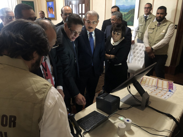 Durante la demostración, que tuvo lugar en el Salón Privado del Palacio Nacional, el presidente de la República probó el novedoso sistema.