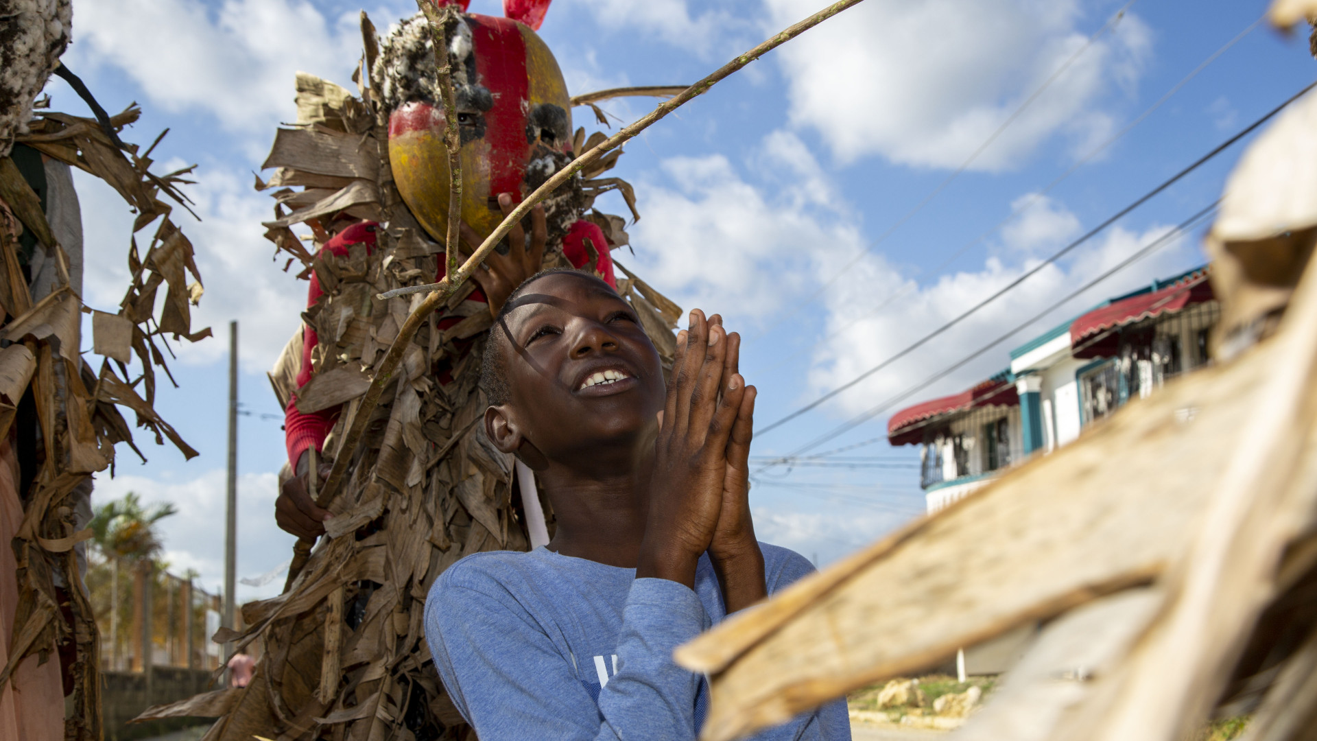 La tradición centenaria y la disciplina siguen vigentes. Los Negros se visten con hojas, higüeros, cadillos y algodón para imponer miedo entre los niños malcriados. #SomosCarnaval Foto: Katy De La Cruz/ Presidencia República Dominicana Enlace noticia: presidencia.gob.do/noticias/los-negros-de-la-joya-guerra Video YouTube: www.youtube.com/watch?v=0pl8pG7xAwQ